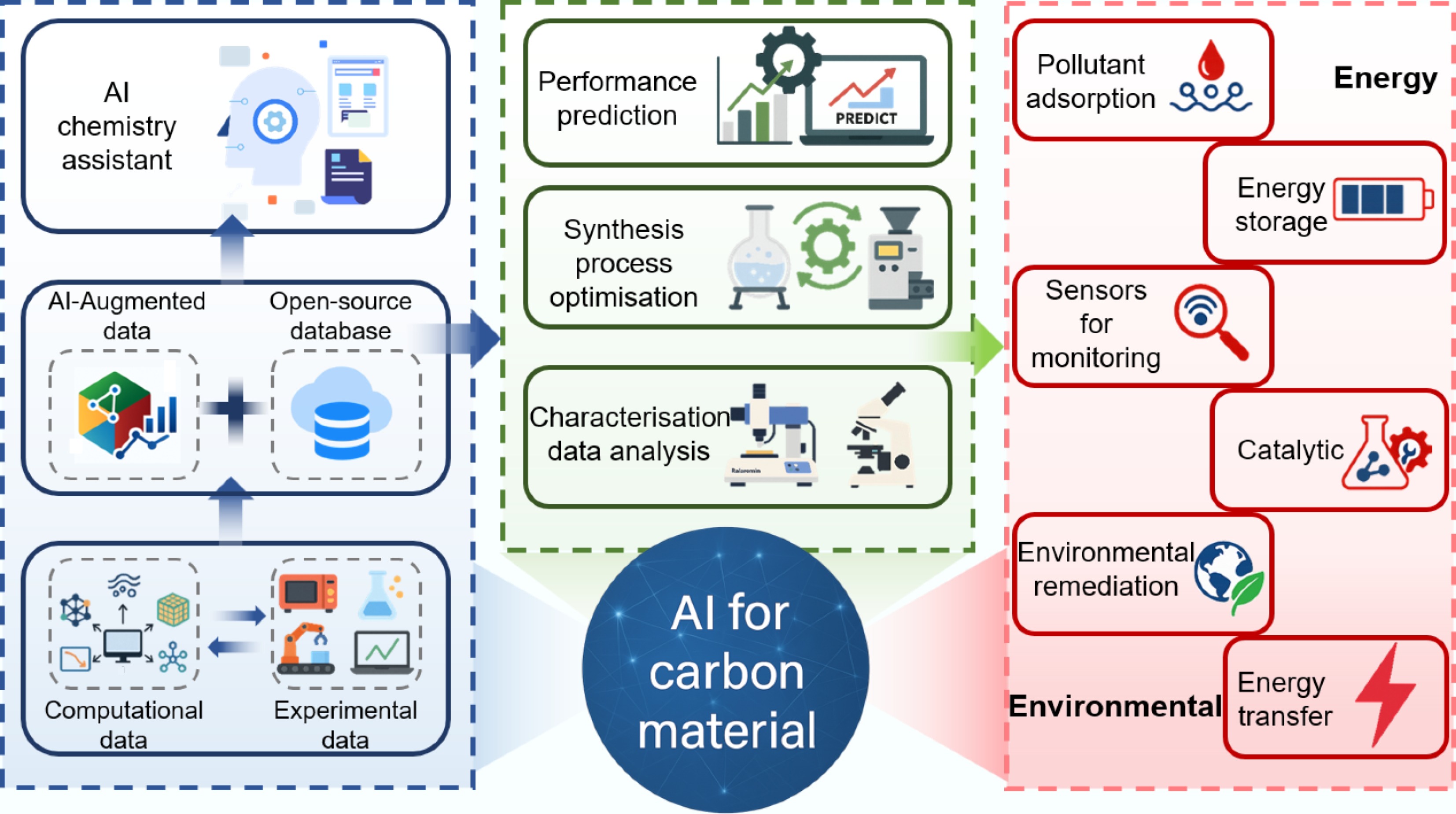 AI techniques in carbon material synthesis and application are discussed.