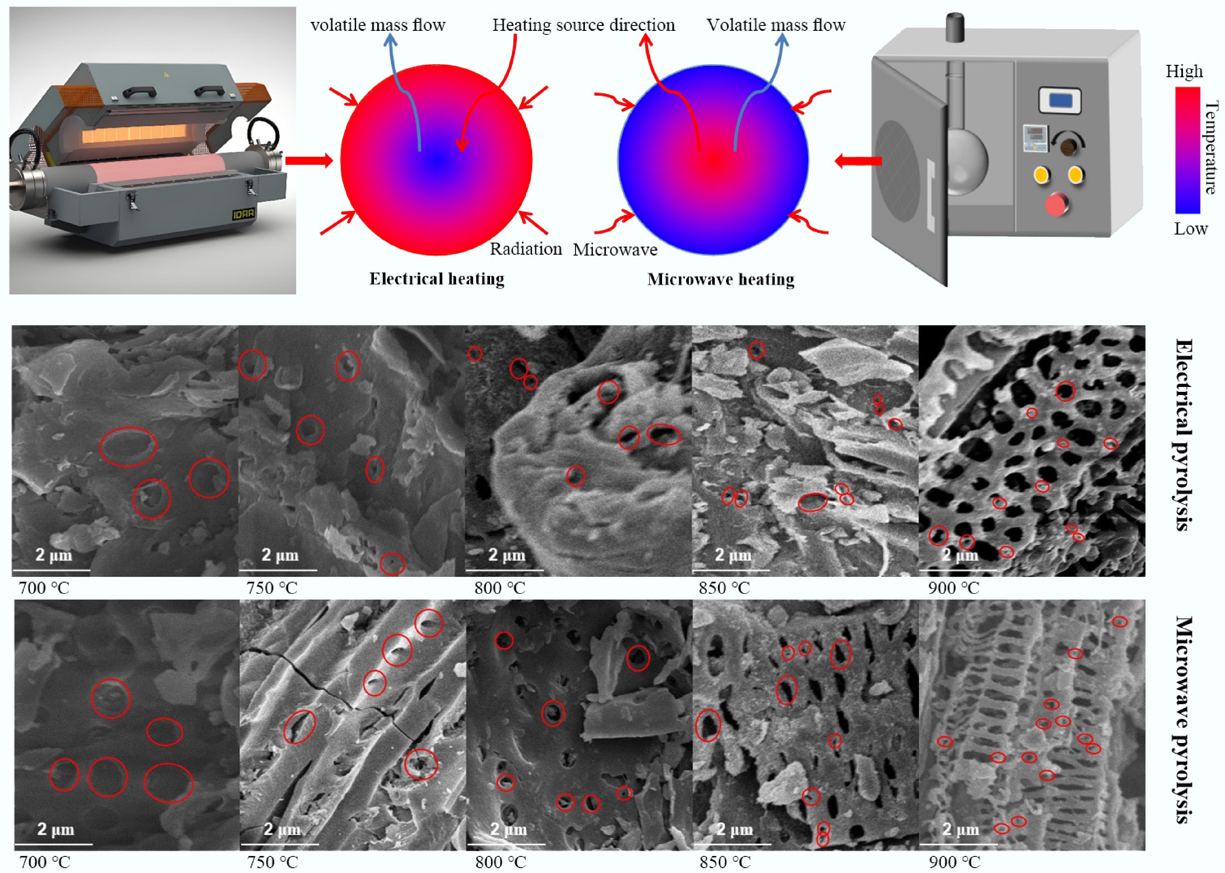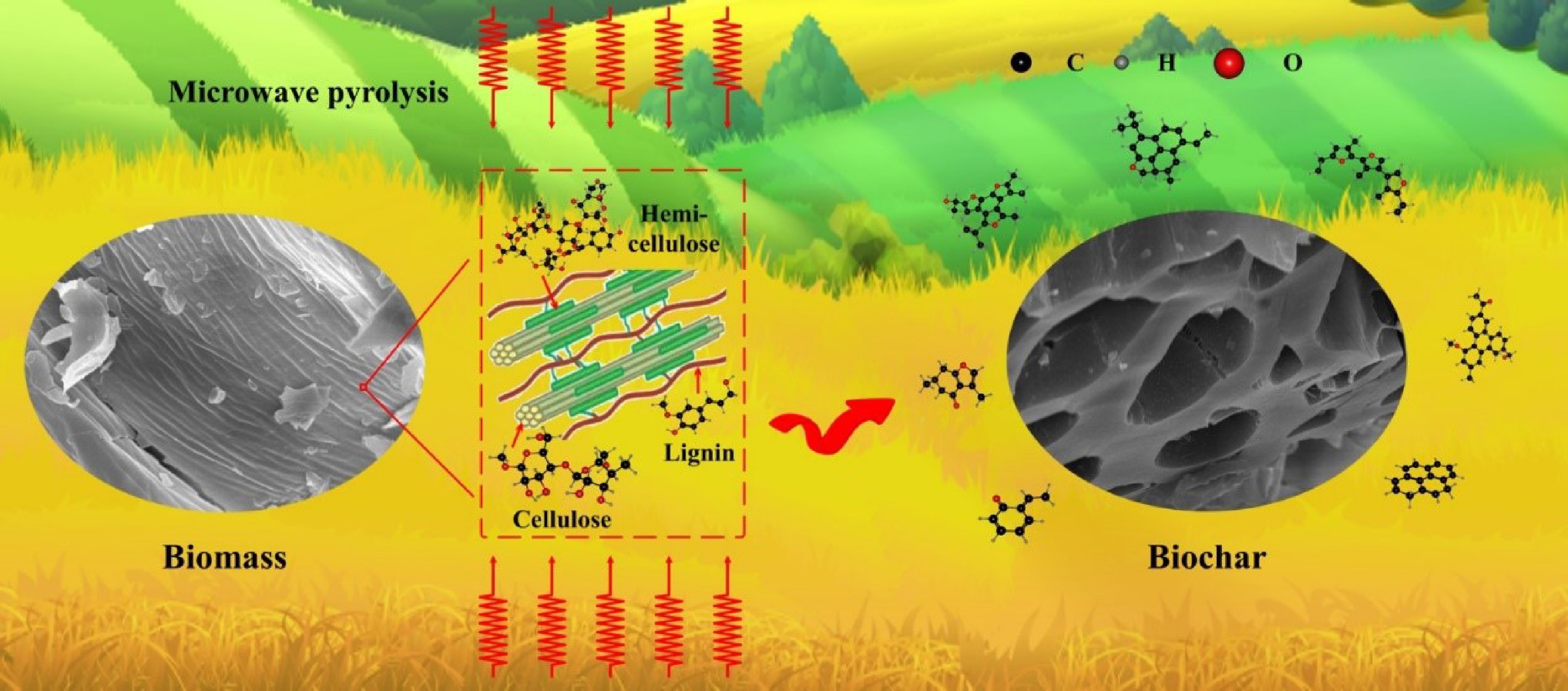 Microwave pyrolysis produces biochars with better properties.