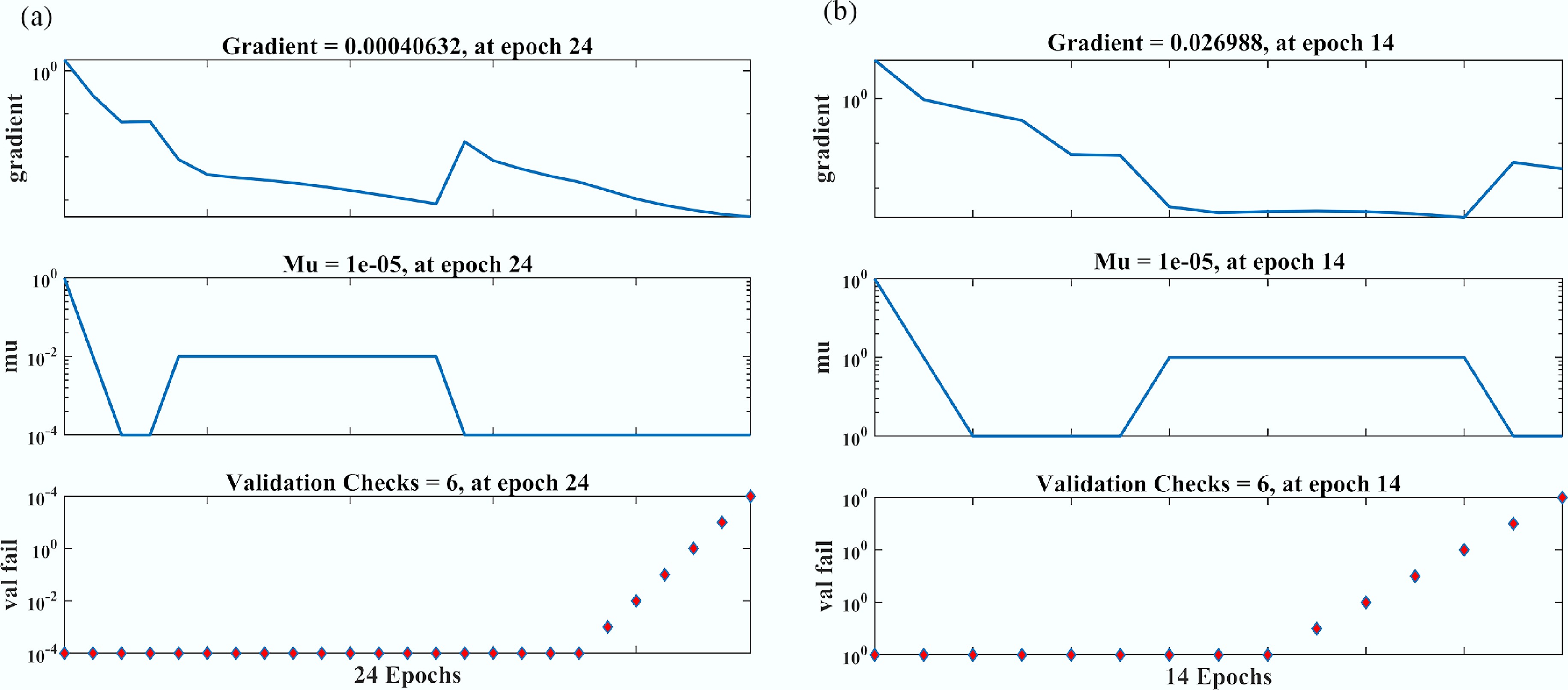 Scenario Case MSE data Performance Gradient Mu Final epoch Time (s) Training Validation Testing Non-aggregated I A 1 1.48882e–5 3.23527e–5 1.38677e–5 1.21e–5 1.00e–7 1e10 25 < 1 2 1.48550e–5 3.32879e–5 1.47673e–5 1.20e–5 1.92e–8 1e10 67 < 2 3 1.72843e–5 3.13655e–5 1.32171e–5 1.03e–5 1.98e–7 1e10 99 < 3 II A 1 4.35370e–6 4.65936e–5 4.34532e–5 4.09e–6 9.99e–08 1e–6 93 6 2 4.89685e–6 4.54796e–5 4.58981e–5 3.89e–6 9.92e–08 1e–6 104 4 3 4.52364e–6 4.85467e–5 5.41256e–5 4.89e–6 9.98e–08 1e–6 186 3 Aggregated I B 1 2.18093e−7 8.82690e−7 1.22922e−6 1.54e−7 2.50e−5 1e−10 117 3 2 2.18767e−7 8.47592e−7 1.59921e−6 1.73e−7 2.94e−6 1e−10 184 2 3 2.79081e−7 8.85570e−7 2.58671e−6 1.95e−7 3.35e−5 1e−10 220 3 II B 1 5.05758e−4 3.33414e−3 1.15199e−3 4.43e−4 7.33e−7 1e−5 14 2 2 5.05423e−4 3.53341e−3 1.15171e−3 4.55e−4 7.90e−8 1e−5 25 4 3 5.06846e−4 3.69321e−3 1.16161e−3 4.68e−4 7.94e−8 1e−5 46 3 -