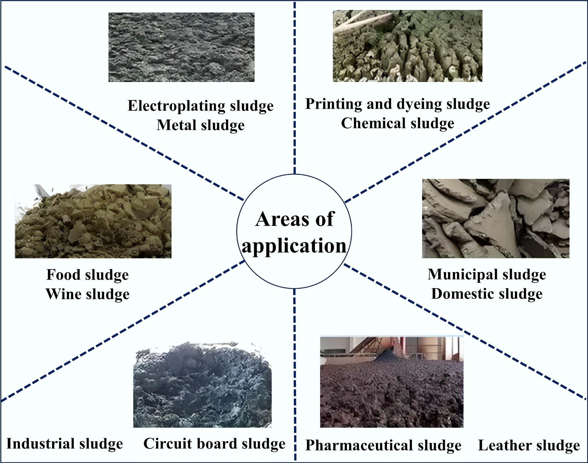 Sludge is a crucial by-product of the urban wastewater treatment process. It can be classified into three distinct categories: municipal sludge, industrial sludge, and agricultural sludge, according to its source and treatment method. Municipal sludge, predominantly derived from sewage treatment facilities and water treatment plants, constitutes the largest portion of sludge generated. Industrial sludge comes from a wide range of sources, including petrochemicals, printing and dyeing, papermaking, the tannery, and electroplating operations[15]. Significant differences exist in the composition and combustion characteristics of different sludges depending on their sources. For example, municipal sludge is typically low in organic matter (30%–60%), while industrial sludge may contain higher levels of heavy metals or other chemicals. Depending on the treatment stage, sludge can be further subdivided into primary sludge (sediment from primary sedimentation tanks), activated sludge (excess sludge from secondary sedimentation tanks in activated sludge processes), humus sludge (sludge from biofilm treatment processes), and chemical sludge (sludge generated by chemical coagulation or precipitation). The composition and combustion behavior of these sludges vary with the separation process. As demonstrated in Fig. 5, various types of sludge have distinct resource utilization potentials and applications within specific industrial domains. Sludge originating from different industries possesses varied resource utilization values: For instance, food sludge is a byproduct of food processing plants and is characterized by its richness in organic matter. This material can be converted into biogas through anaerobic fermentation or used as a soil conditioner. Wine sludge is produced during the fermentation and filtration stages of the winemaking process, and its high organic content can be extracted as biofuel or used to produce organic fertilizer. This multi-path transformation model effectively reduces environmental risks and promotes the recycling of waste into energy, building materials, and agricultural products. In this section, two dimensions are analyzed: component distribution and pretreatment. Considering the significant differences in the physicochemical properties of different sludge types and their potential impact on the results of the study, this paper differentiates between sludge types in the following discussion. Unless indicated otherwise, the literature cited in this paper pertains to municipal sludge.