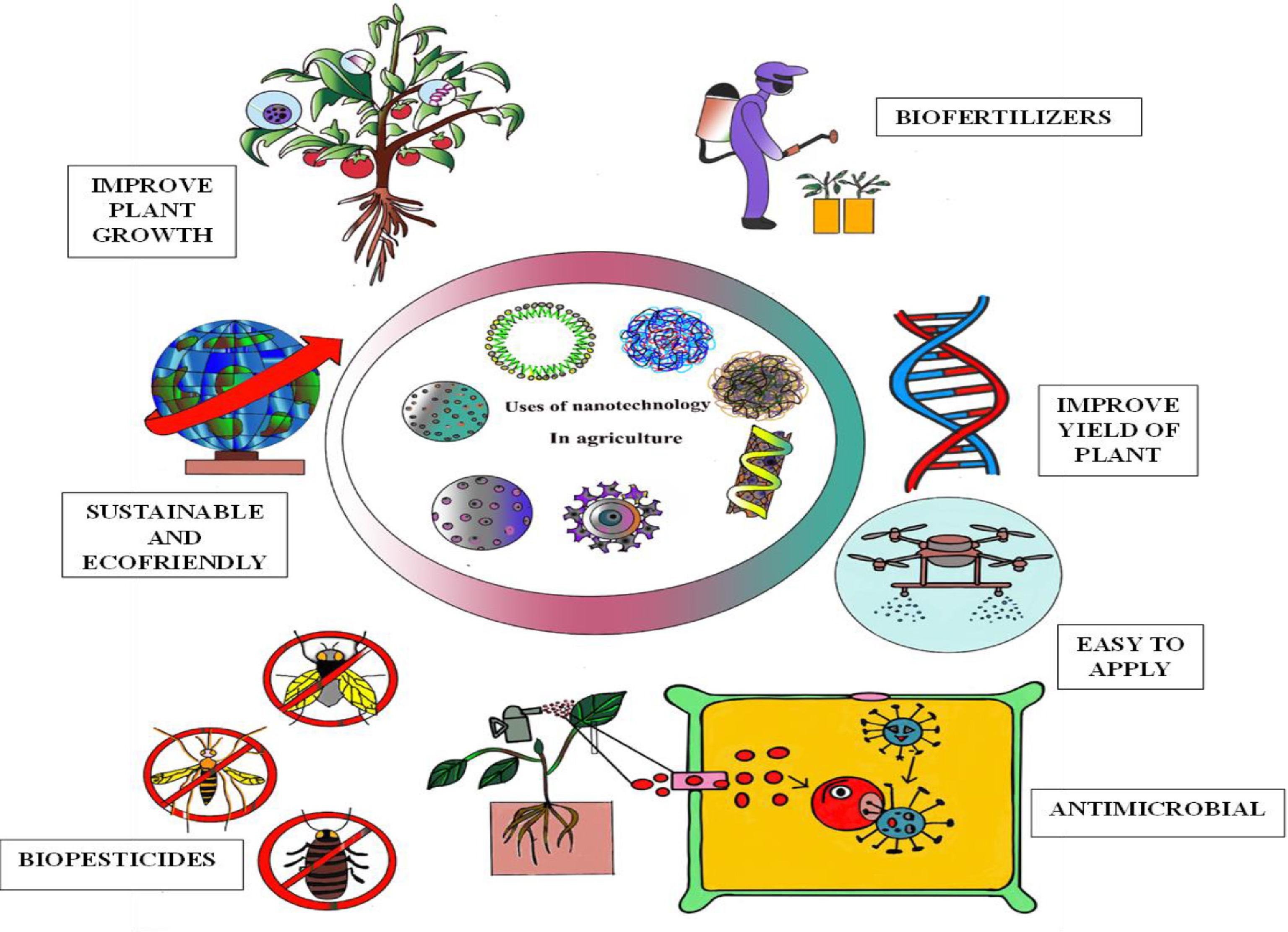 Eco-friendly green nanoparticles, produced through biological methods utilizing plant extracts, microbes, or fungi, are crucial for advancing sustainable agriculture. Unlike traditional chemical nanoparticles, these green alternatives are safe for the environment, biodegradable, and less toxic, thereby decreasing the ecological impact of agricultural practices. They improve crop yields by the target delivery of the nutrients and agrochemicals, which reduces losses from leaching or volatilization, and enhances resource efficiency (Fig. 7). In managing pests and diseases, green nanoparticles possess antimicrobial and insecticidal properties, providing a safer substitute for synthetic pesticides and lowering the risk of resistance. Their controlled-release characteristics ensure lasting effectiveness, which minimizes the need for frequent applications and reduces overall costs. Furthermore, these nanoparticles support soil remediation by neutralizing contaminants and boosting soil microbial activity. By fostering plant growth, enhancing stress resilience, and increasing yields while limiting environmental damage, green nanoparticles support sustainable agricultural practices and contribute to long-term food security and environmental protection[63].
