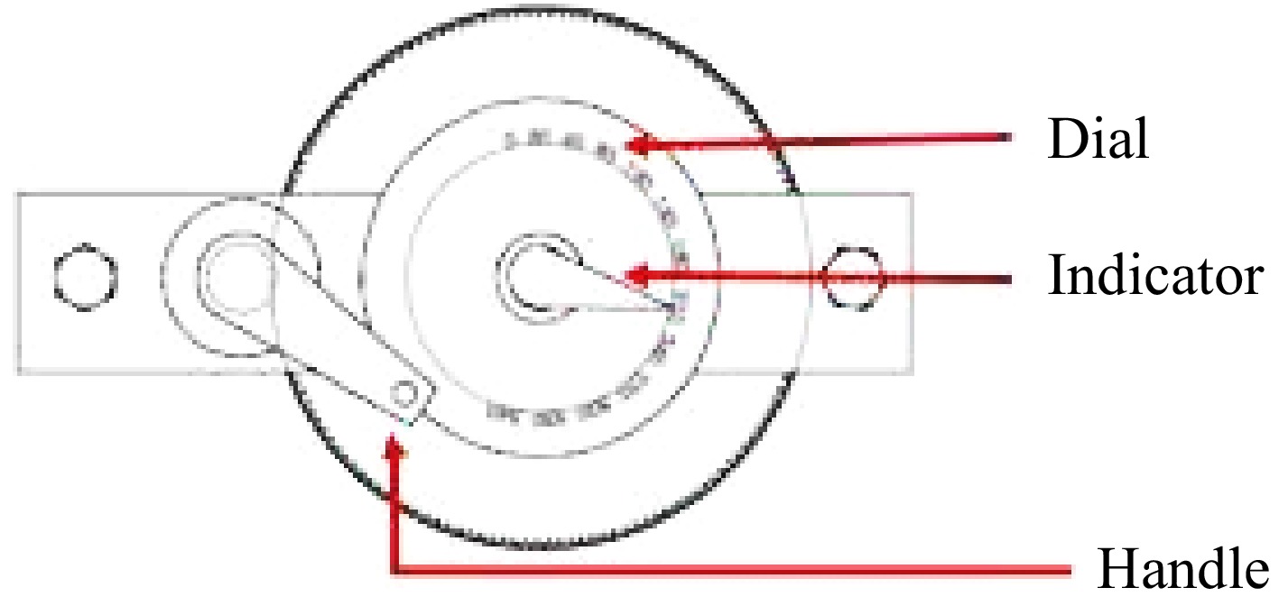 A needle (indicator) and dial have been used to indicate the set position of the spray delivery pipe, depicted in Fig. 5. The indicator was connected to the driven gear shaft, as mentioned in the generator unit. The set (required) position of the delivery pipe depends on the spraying target area, which was decided by the tractor operator. When the tractor operator fixes the required position of the spray delivery pipe by adjusting the input lever, that position of the spray delivery pipe is shown by an indicator in angle form. The flow chart of the position indicator of the spray delivery pipe is shown in Fig. 5.