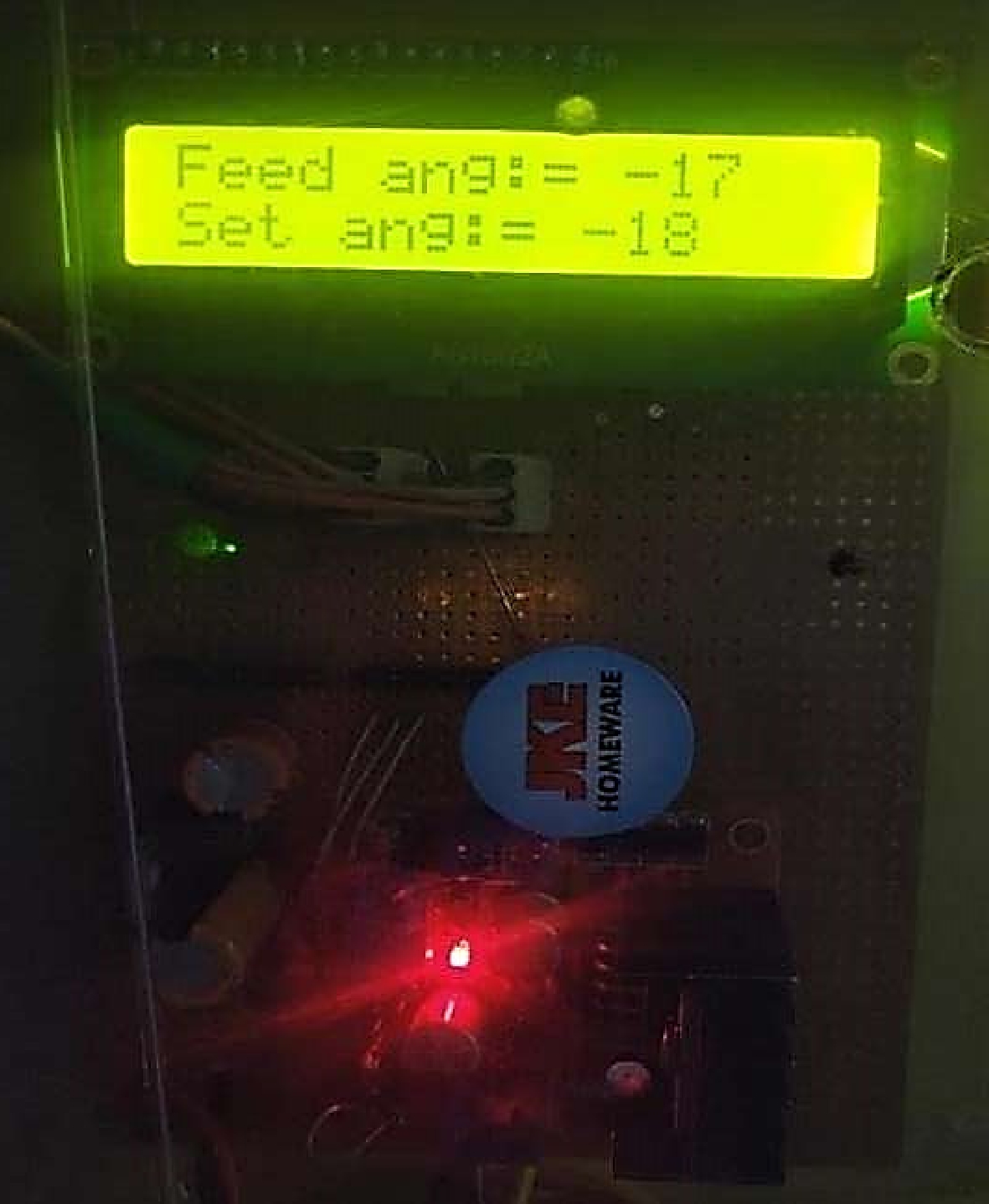 The microcontroller-based embedded system (depicted in Supplementary Fig. S1) has been designed to automatically control the rotation of the spray delivery pipe of the air blast sprayer based on signals received from the microcontroller. This system consists of several components, including a microcontroller (Arduino Uno, with 2KB SRAM, Smart Projects, Italy), a DC motor (12 V, 7 kg-cm torque, India), a motor driver (L298N, 5-35V, India), a 12 V DC battery, a position sensor (Potentiometer, 10 K, rotary type, Pot-Tech Electronic, Bombay, India), and an LCD. The developed embedded system incorporates two potentiometers, both of 10 K resistance and featuring 10 turns. The first potentiometer (R1) is positioned for use by the tractor operator, while the second one (R2) is connected to the motor via a shaft for control purposes. The LCD is utilized to display both the set (required) and current positions of the spray delivery pipe. An Arduino code is uploaded to the Arduino Uno via a USB cable to control the rotation of the spray delivery pipe by operating the DC motor. The signal generator lever (shown in Fig. 4) enables the operator to adjust the position of the spray delivery pipe. The signal generated by the lever is transmitted to the DC motor through the microcontroller. Depending on the signal received from the microcontroller, the motor is directed to rotate either clockwise or anticlockwise. The developed embedded system is illustrated in Fig. 5.