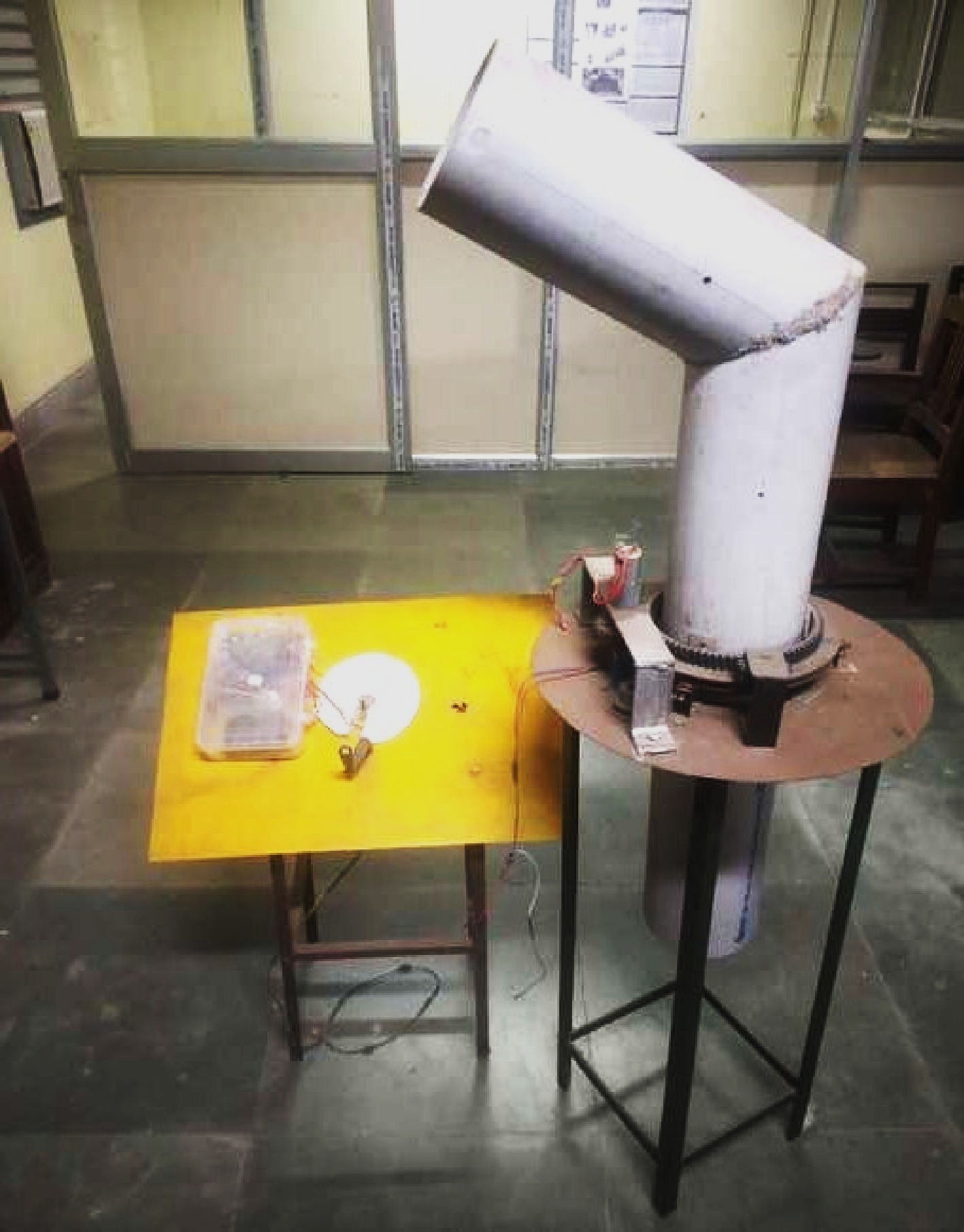 The upper unit consists of a circular plate with an outer diameter of 254 mm and an inner diameter of 183 mm. A ring gear with 80 teeth and a module of 2.5 is securely attached to its upper surface. Additionally, a 238 mm diameter circular flat piece is concentrically welded onto the lower surface, as illustrated in Fig. 1a & b. In the lower unit, the pinion gear meshes with the ring gear (80 teeth, 2.5 module) to rotate the upper unit. The spray delivery pipe is affixed to the ring gear, ensuring that they are coaxial with each other. This setup allows the spray delivery pipe end to rotate within a range of ± 180° from the main position.