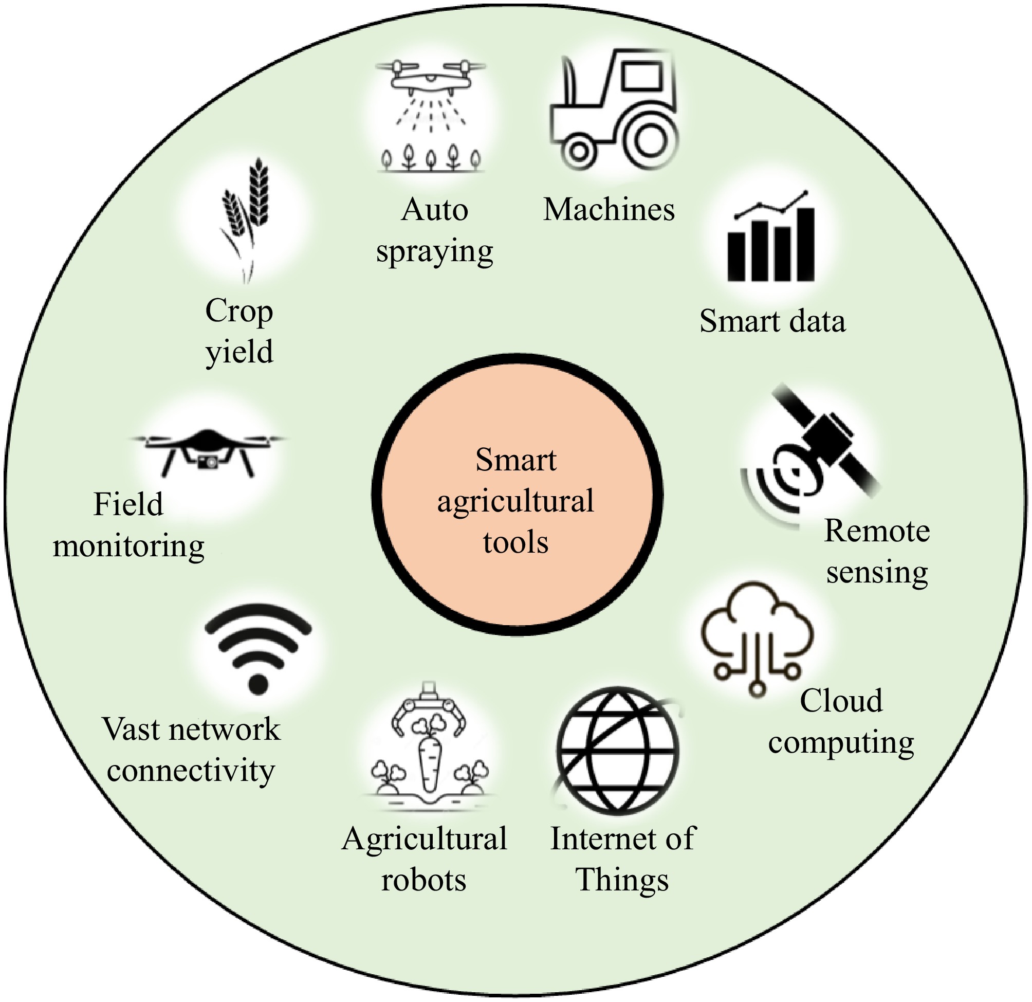 In the decades between 1940 and 1960, the Ford Foundation, the Rockefeller Foundation, and other major organizations spearheaded and generously funded programs for agricultural research, extension, and infrastructure development that resulted in the 'Green Revolution', a global alteration of agriculture that drastically boosted agricultural production[4]. However, to practice sustainable agriculture, it is now essential to adopt modern technologies such as remote sensing, the Internet of Things (IoT), agricultural robots, farming mechanization, cell phones, computers, etc. These modern technologies that have emerged with traditional agricultural knowledge are anticipated to uplift global agricultural production by solving critical issues in soil and farming practices. Currently, groundbreaking ideas in precision agriculture, smart agriculture, and sustainable agriculture are mentioned in several articles and journals that conceptually merge agriculture with modern technologies in an environmentally friendly way[5,6]. The application of advanced technologies such as robots, sensors, cloud computing (CC), big data analytics, and artificial intelligence (AI) will compel modern farms and agricultural enterprises to operate differently. These developments should enable firms to operate more economically, effectively, and sustainably[7].