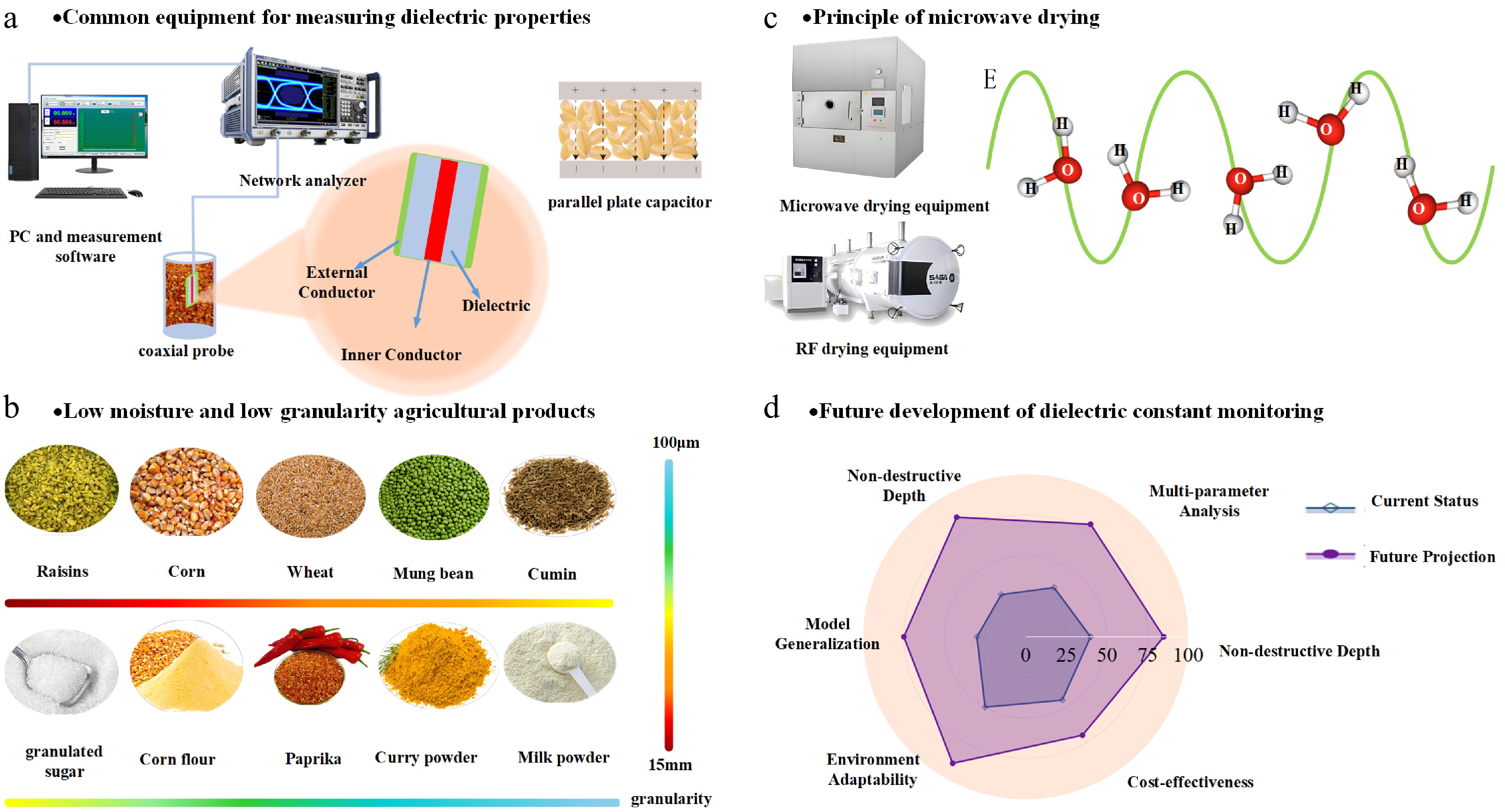 However, the current dielectric characterization methods employed for monitoring the drying process of agricultural products encounter certain challenges. The interference of environmental factors, such as temperature and humidity, on the measurement of dielectric constant introduces bias in the measurement results. The methods and equipment utilized for measurement are constrained by limitations, including the applicable frequency range and the types of samples that can be measured. Furthermore, during the drying process of agricultural products, the dielectric constant is interrelated with multiple parameters, such as moisture content, temperature, and drying time, which complicates the processing and analysis of the resulting data.