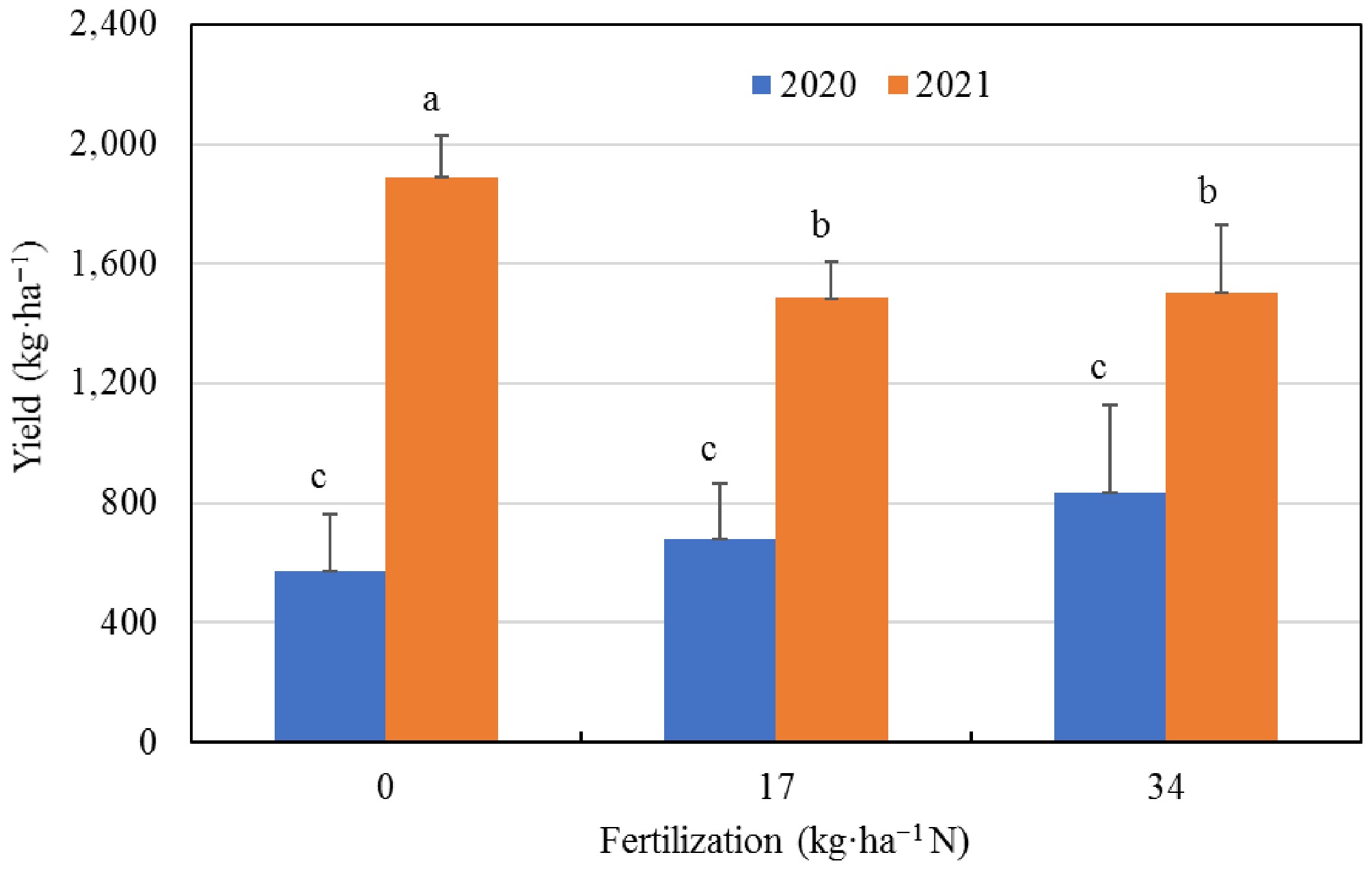 • In this experiment, the Multicote 4 fertilizer (14-14-16) (Haifa North America, Savannah, GA, USA) was used. Fertilization was carried out on May 27, 2020 and June 4, 2021. Three fertilizer rates (treatments), 0, 7.56, and 15.12 g actual nitrogen (N)/planting hill, were used, which equals 0, 18, and 36 kg/ha (2,402 hills/ha). Fertilizer granules were spread in an area of ~0.2 m2 around each planting hill. The experiment was arranged in a completely randomized block design (RCBD), with three replications (blocks). Each block consisted of three treatments (fertilizer rates) with two planting hill/cultivar in each treatment, except for cultivar 'Boyne', as limited 'Boyne' plants were originally planted in this field. Data from each cultivar were analyzed separately (i.e., no cultivar comparison) as cultivars have large genetic differences in growth habits and yield[9]. All data were subjected to analysis of variance using PROC GLIMMIX, in which fertility treatment and year were the fixed effects, and block/replication was the random effect. Least squares means (LSMEANS) were separated using the pdiff option at the 0.05 probability level.