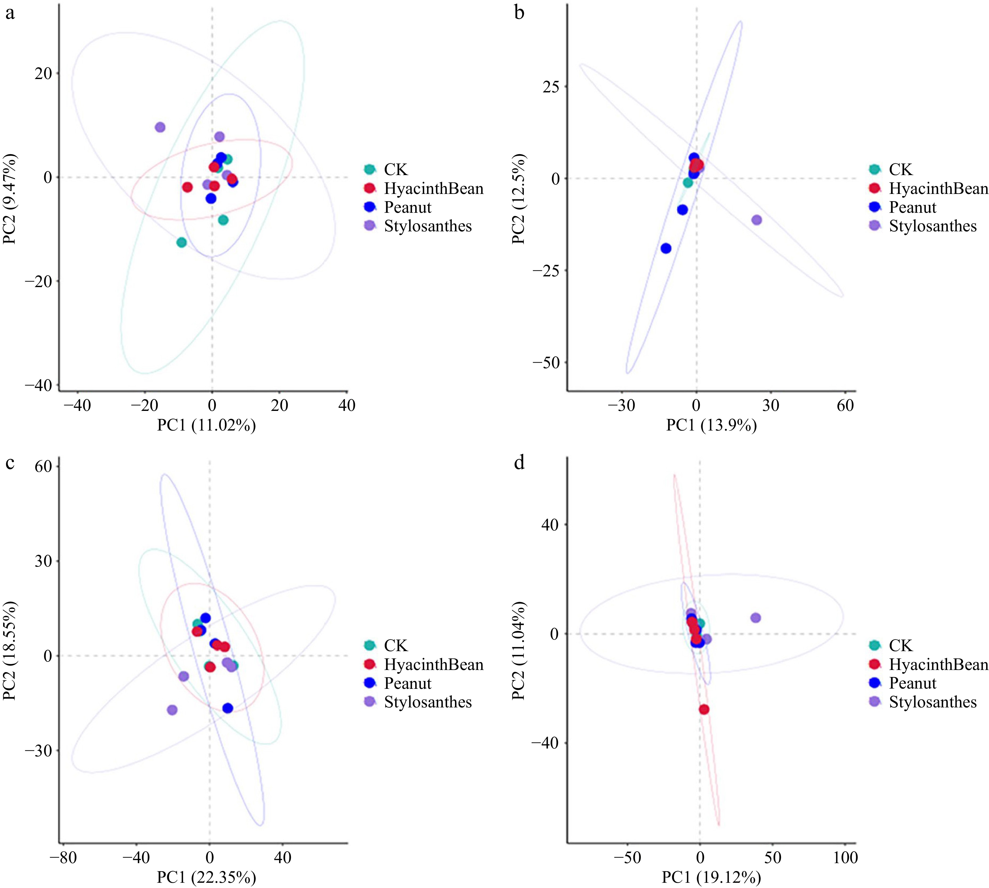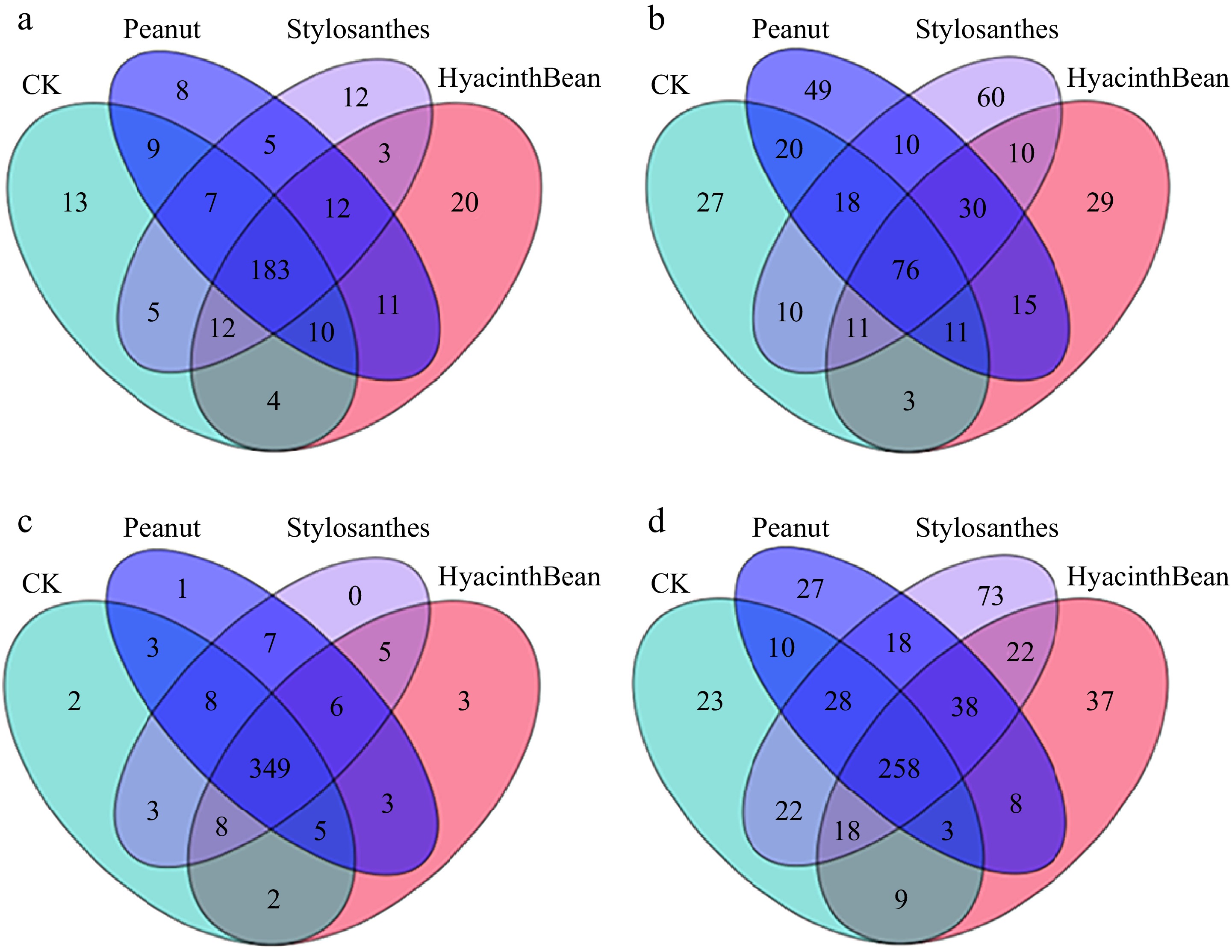 The above results indicate that intercropping of different leguminous plants has little effect on the diversity of microorganisms in the cassava rhizosphere.