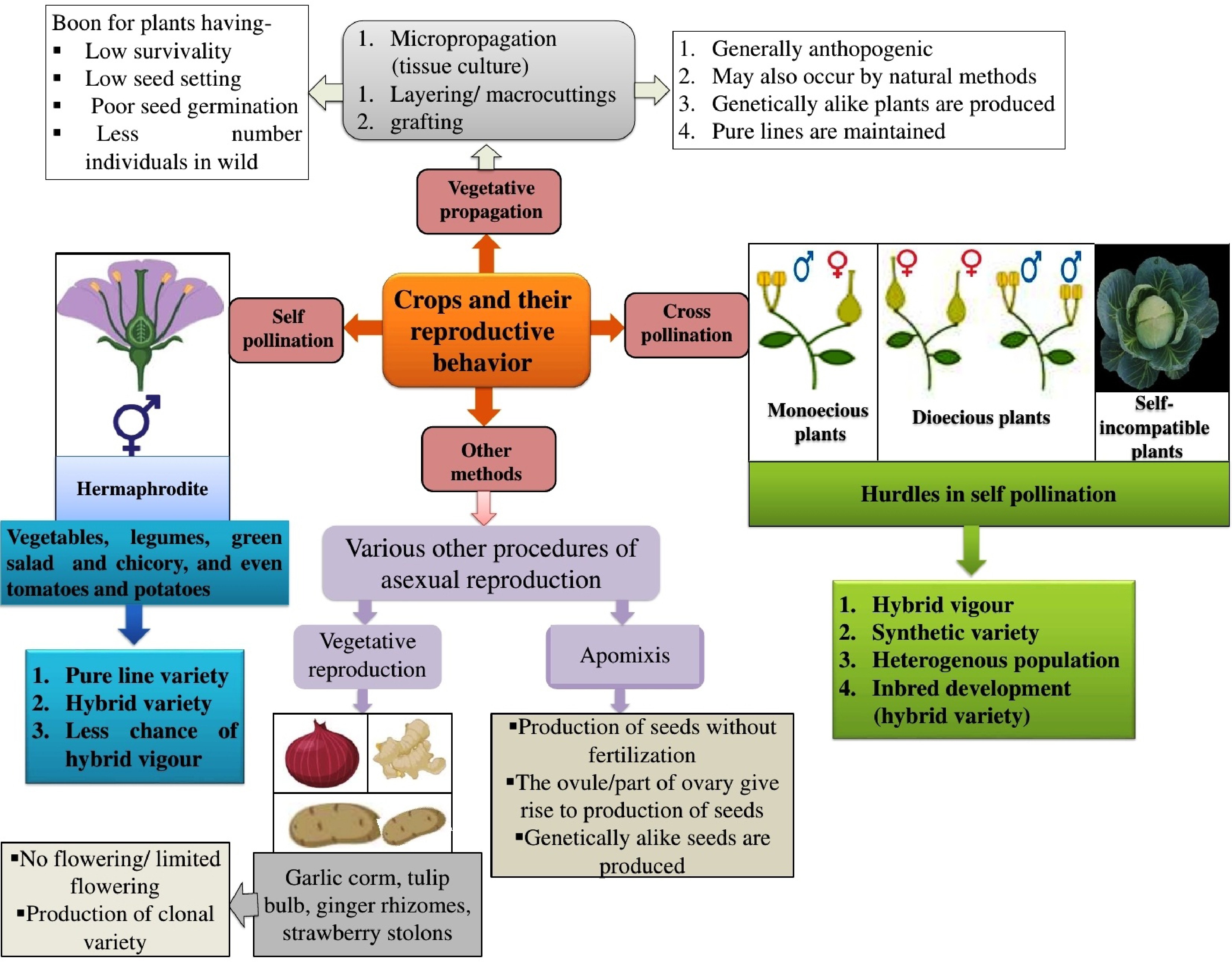 Different reproductive strategies in plants showcasing the varied reproductive behaviours observed in vegetable crops.