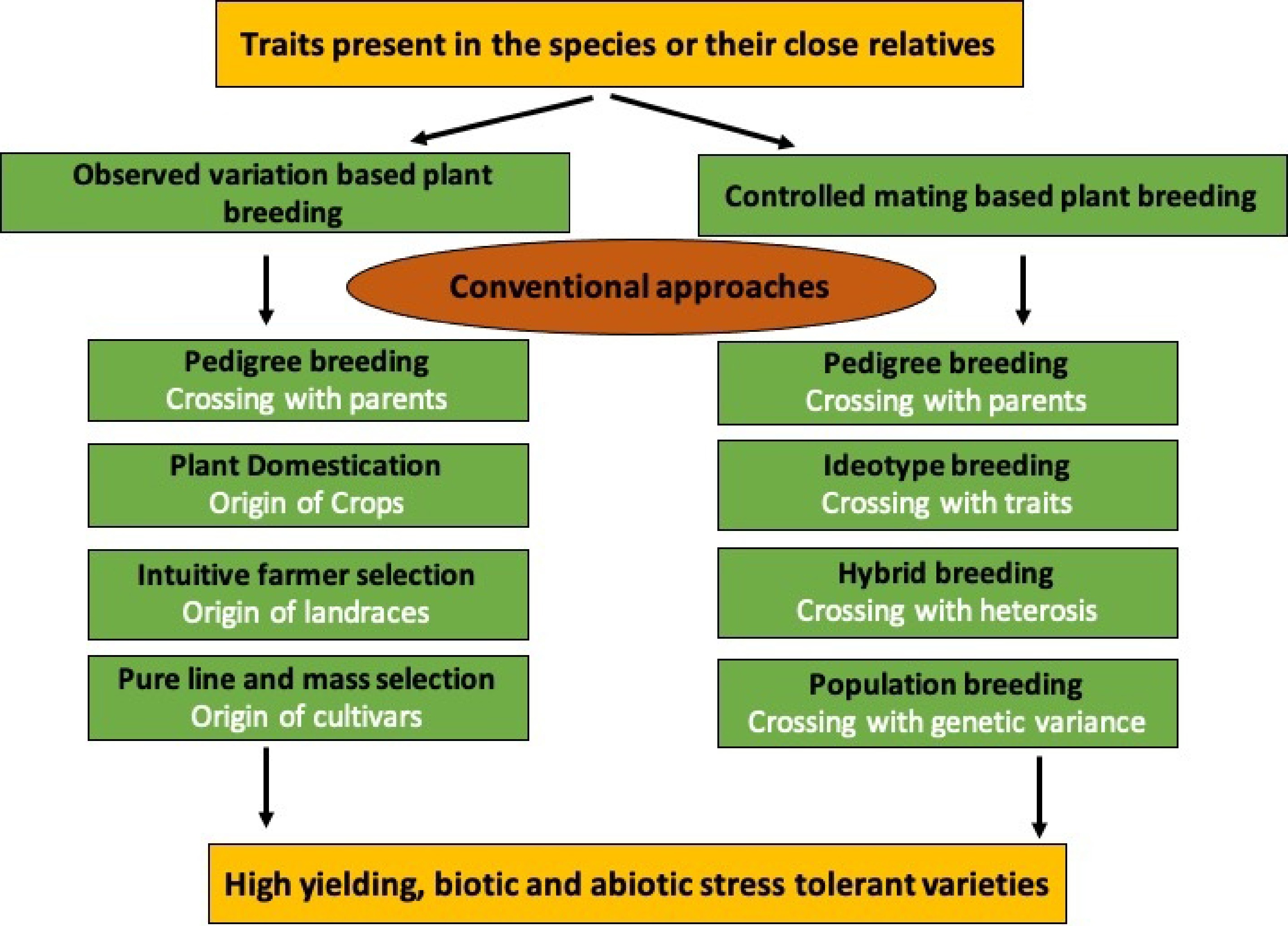 Conventional approaches use several breeding strategies, as shown in Fig. 3, and their suitable examples are discussed in Table 2.