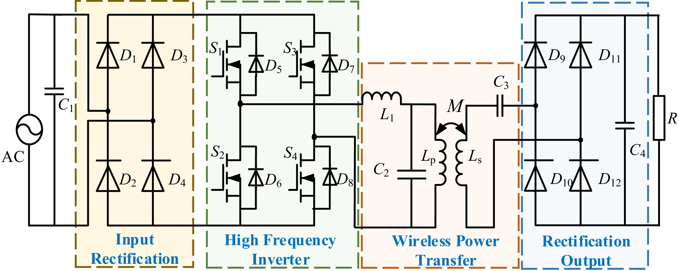 In hazardous environments such as coal mines and petrochemical facilities, where explosive gases or dusts are present, electrical equipment must comply with intrinsic safety (IS) standards to prevent ignition. Intrinsically safe systems are designed such that even under fault conditions, the electrical energy available in the system is insufficient to cause ignition of the surrounding explosive atmosphere. With the advancement of society and technology, wireless power transfer (WPT) technology has become a significant research direction in modern power transfer systems[1,2]. It has been widely applied in various fields such as implanted medical devices[3,4], electric vehicles[5,6], portable communication devices[7], and smart homes[8]. In particular, in hazardous environments like underground coal mines, traditional wired power transfer methods pose numerous inconveniences and safety hazards. But their deployment in underground coal mines remains challenging due to the unique environmental conditions. Existing systems often struggle with issues such as voltage fluctuations, inadequate protection circuits, and insufficient filtering performance, which undermine their reliability and safety. Moreover, the current national standard (GB/T 3836.1-2021 Explosive Atmospheres—Part 1: Equipment—General Requirements) imposes strict limitations on the power threshold of radio frequency equipment in explosive environments, which is based on low-frequency experimental data from the 1970s. WPT technology, with its advantages of contactless transfer, electrical isolation, and flexible arrangement, has gained widespread attention[9−11].