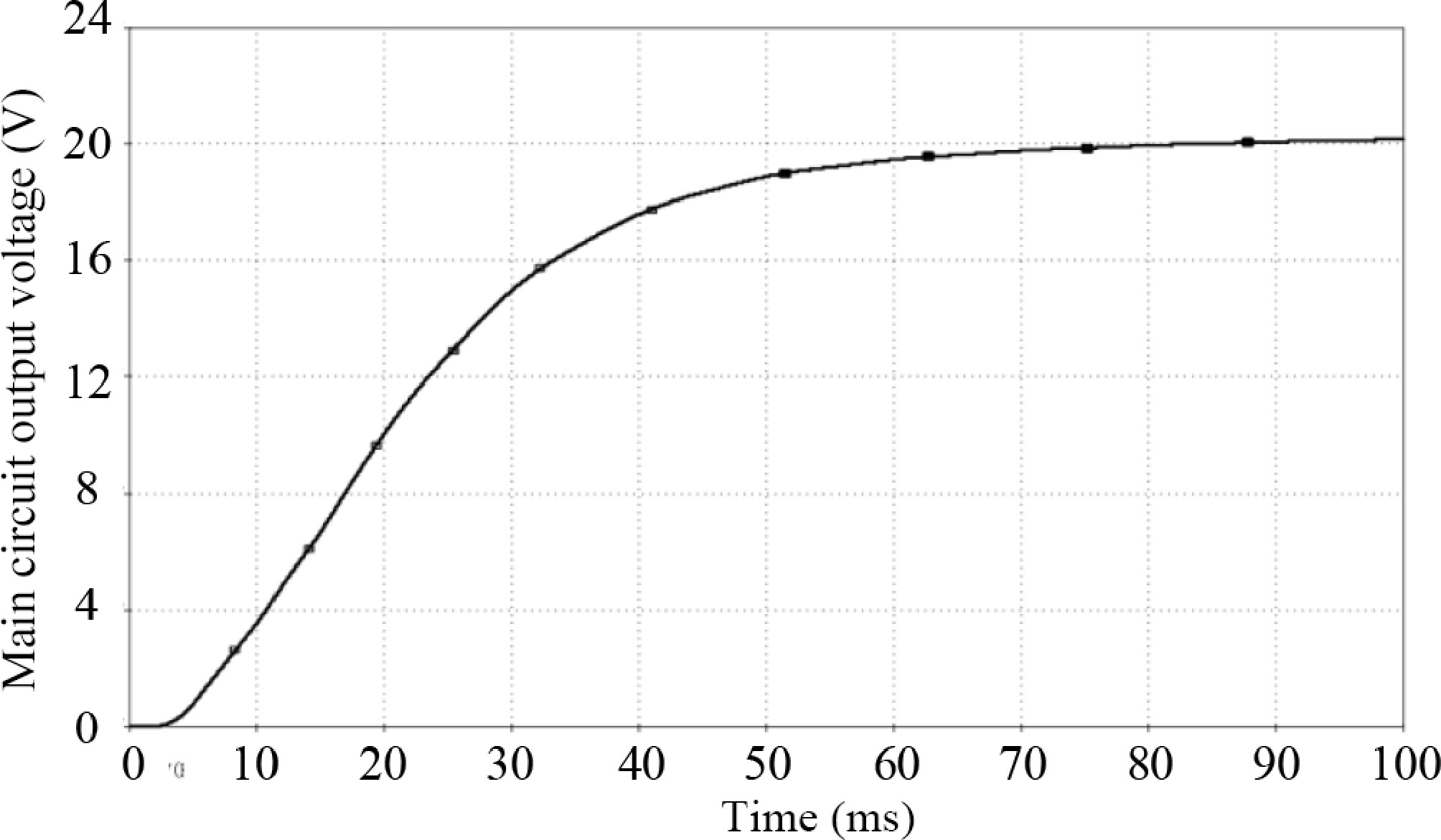 The output voltage waveform of the main circuit is shown in Fig. 10. In the 0 to 20 ms range, the output voltage rises rapidly and then gradually stabilizes, eventually maintaining around 2 V. This waveform indicates that the system transitions quickly and steadily from the initial state to the steady state, with minimal voltage fluctuations in the steady state. The smooth curve demonstrates the system's good stability and reliability. This stable voltage output provides a foundation for further integration with the DC-DC converter and protection circuit to ensure an intrinsically safe output for electrical equipment in coal mines.