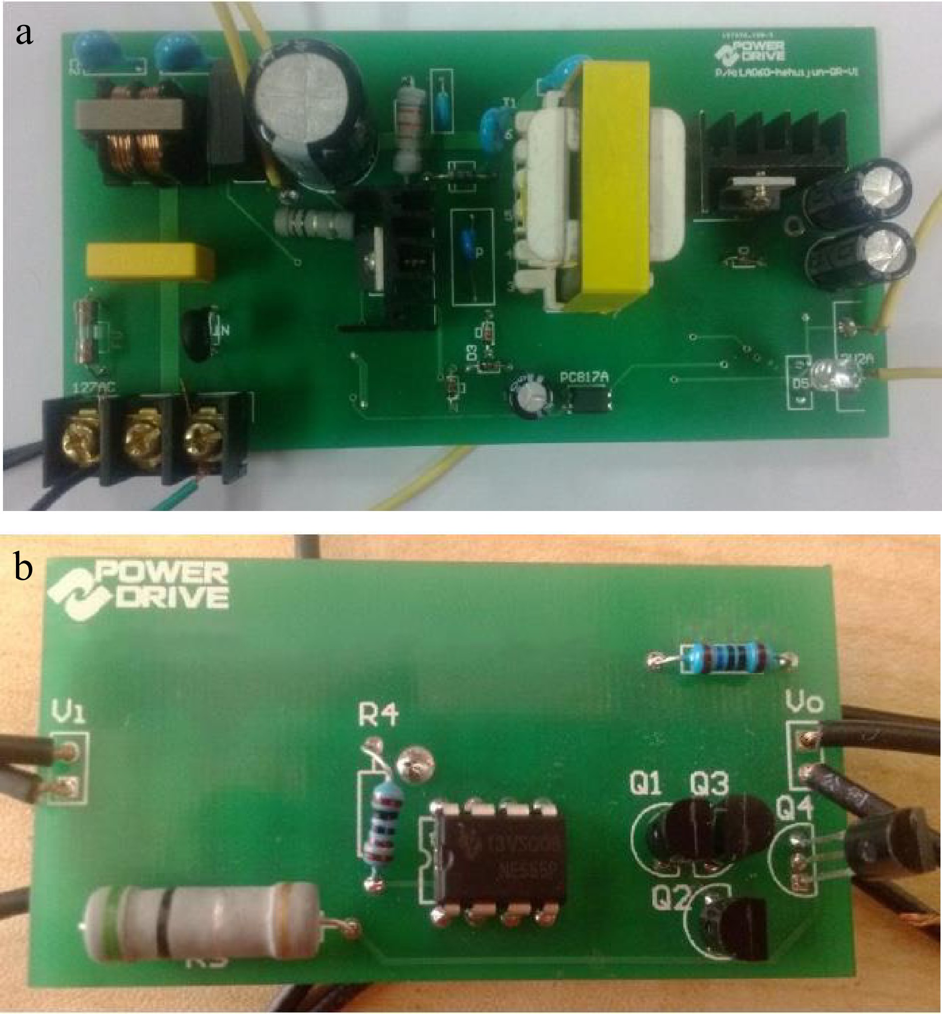 Prototype of the improved clamping-based single-stage flyback converter. (a) Single-stage flyback converter. (b) Improved clamping-based protection circuit.