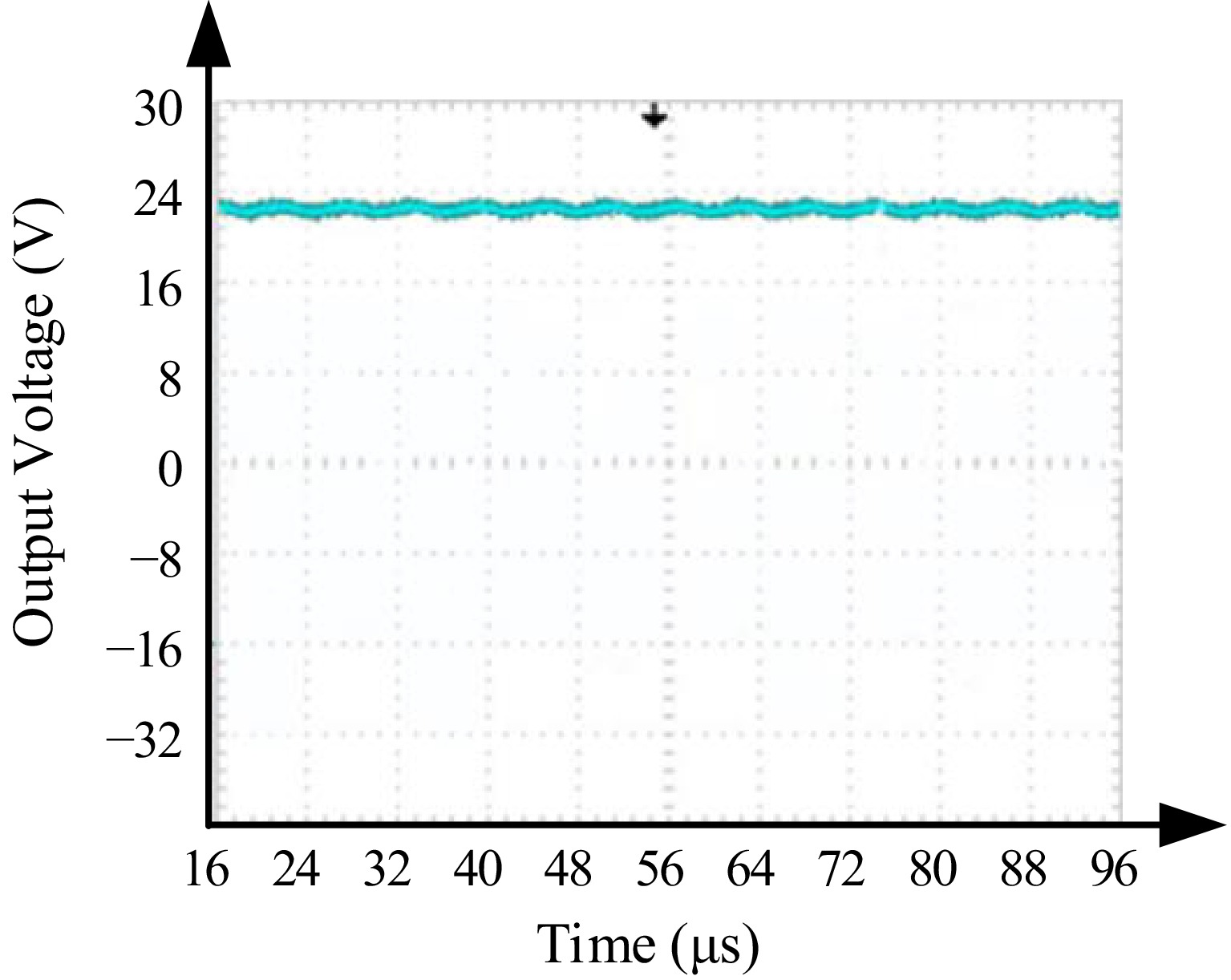 As shown in Fig. 19, the system's output voltage waveform can achieve the design requirement of 24 V output. However, the output voltage ripple is relatively large. This can be improved by adding a filter capacitor at the output. However, increasing the output filter capacitor may result in the system output not being intrinsically safe, which would contradict the original design intention. Therefore, such a power supply is suitable for intrinsically safe equipment where the voltage quality requirement is not too stringent.