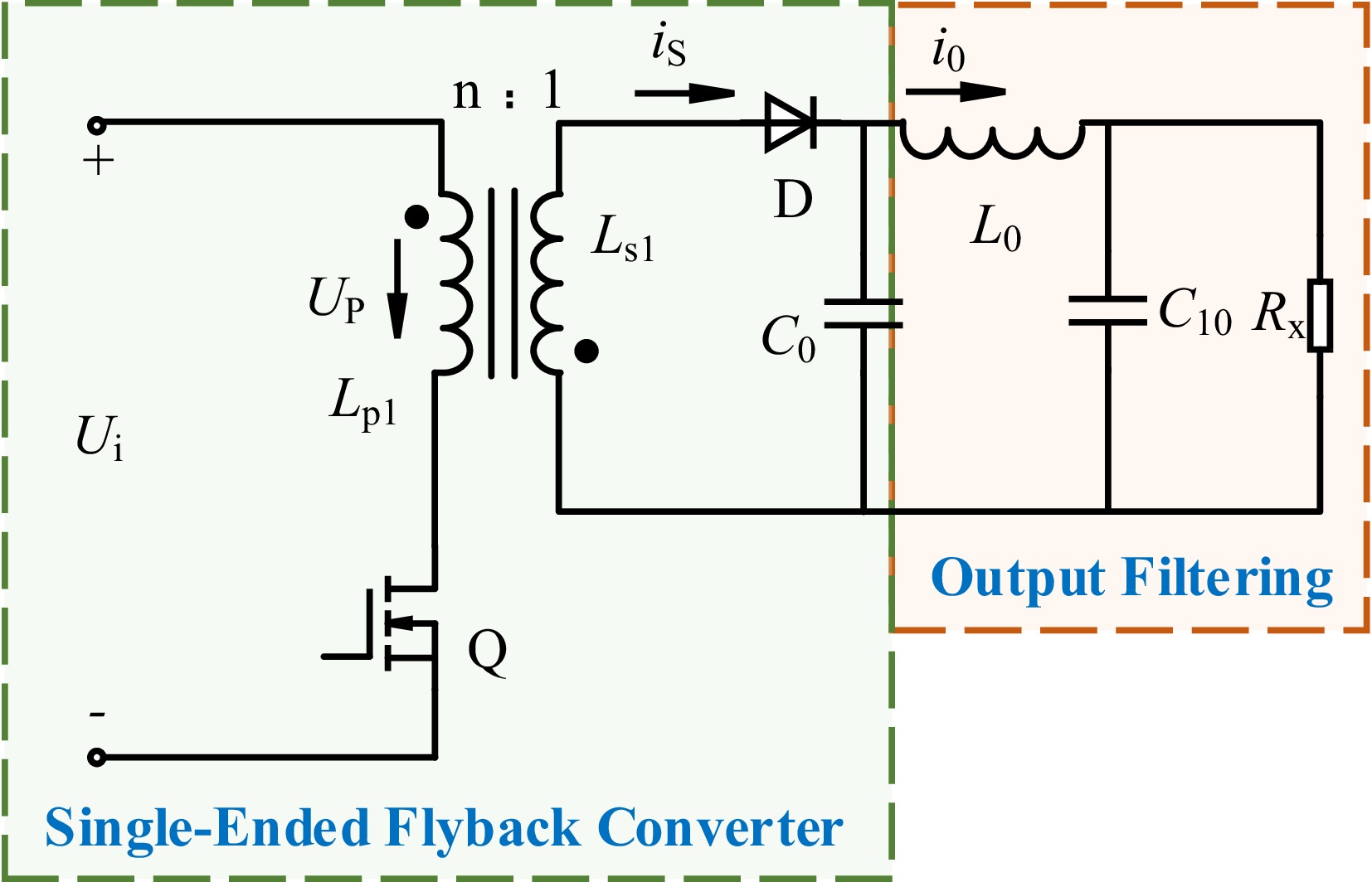 $ {U}_{\text{O}}=\dfrac{D}{n(\text{1}-D)}\cdot {U}_{\text{i}} $ (9) where, Ui is the input voltage, n is the turns ratio of the converter, and D is the duty cycle.